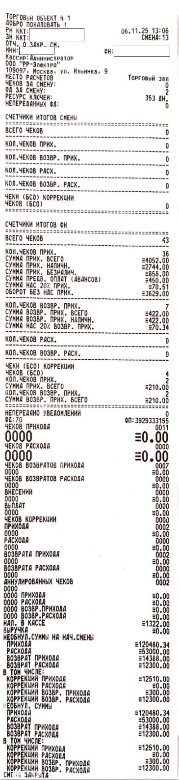 Счетчики в онлайн-кассе, которые печатают информацию о пробитых суммах за смену, являются неофициальной опцией всех онлайн-касс для удобства кассиров. Работа их нигде не регламентирована ни на законодательном, ни на каком либо другом уровне. Поэтому разные онлайн-кассы считают дневную выручку по-разному, а у некоторых онлайн-касс бывает и такое что этой опции даже и нет - печатается только то, что требует законодательство, и отчет о закрытии смены становится похож внешне на отчет об открытии смены. А в последней версии прошивки печать счетчиков можно вовсе отключить: