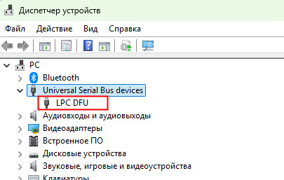 9. Будет установлен драйвер и после перезапуска режима DFU в списке в «Диспетчере устройств» появится «LPC DFU»