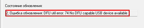 2, Ошибка обновления: DFU util error: 74 No DFU capable USB device available