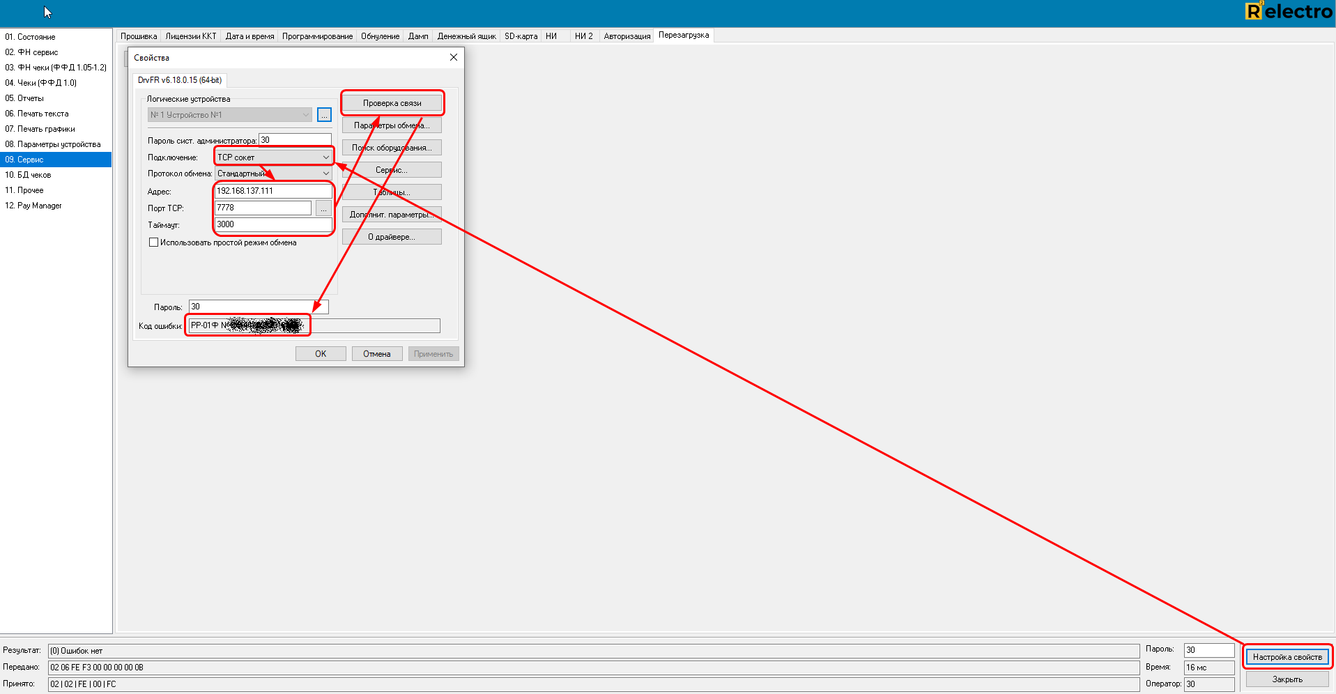 Вариантом установки связи, описанным ниже, устанавливается связь даже если в онлайн-кассе настроен динамический IP. Также настраивается связь с ОФД.